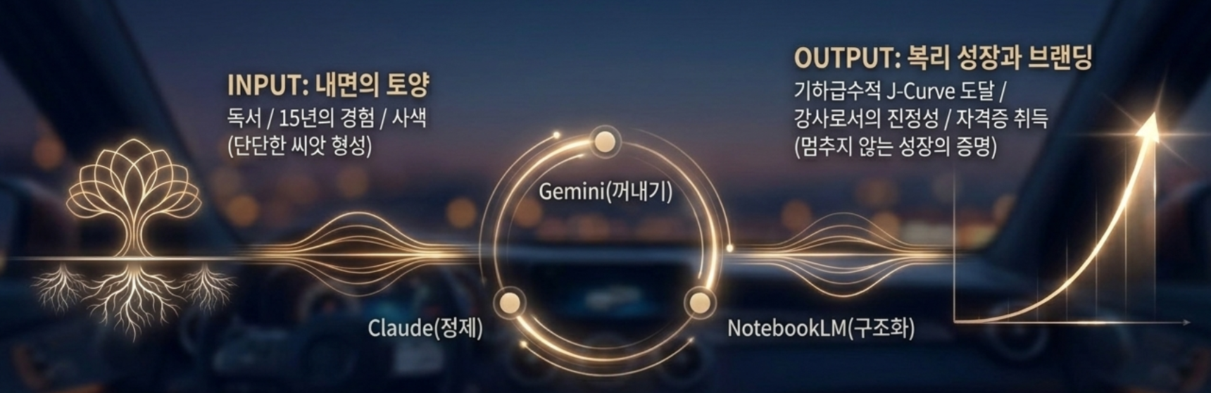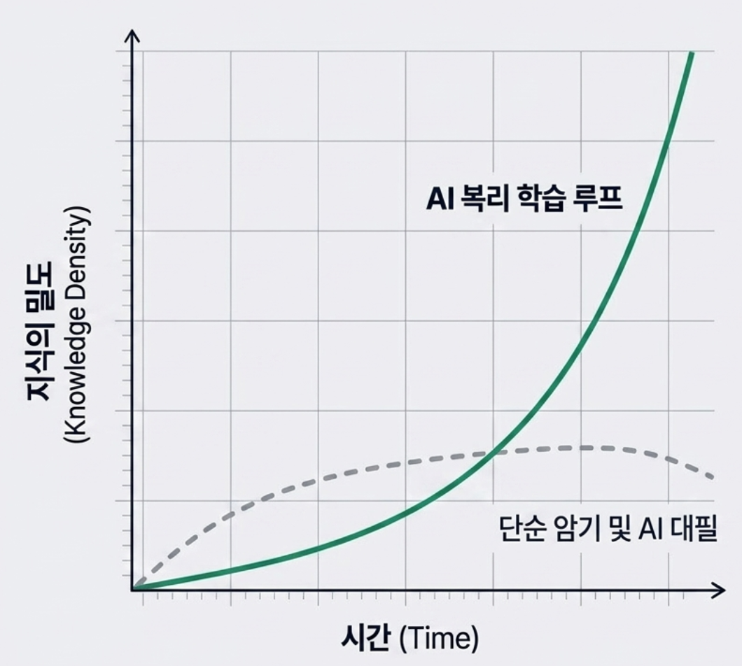 이게 왜 강력한가. 단순히 정보를 입력받는 구조가 아니라, 내 언어로 꺼내고 → 정제하고 → 재구조화하고 → 다시 대화하는 순환이기 때문이다. 이 과정은 단기 암기가 아니라 내면화다. J커브처럼, 초반에는 느리게 쌓이는 것 같아도 어느 순간 기하급수적으로 성장하는 구조가 만들어진다.