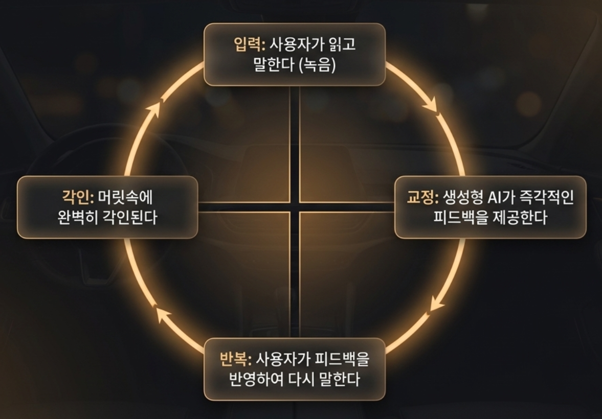 논의 끝에 도달한 아이디어는 이렇다. 국가기술자격증(기사 등) 합격을 목표로, 사용자가 직접 말하고 녹음한 내용을 생성형 AI가 피드백해 주는 반복 학습 루프 플랫폼이다.