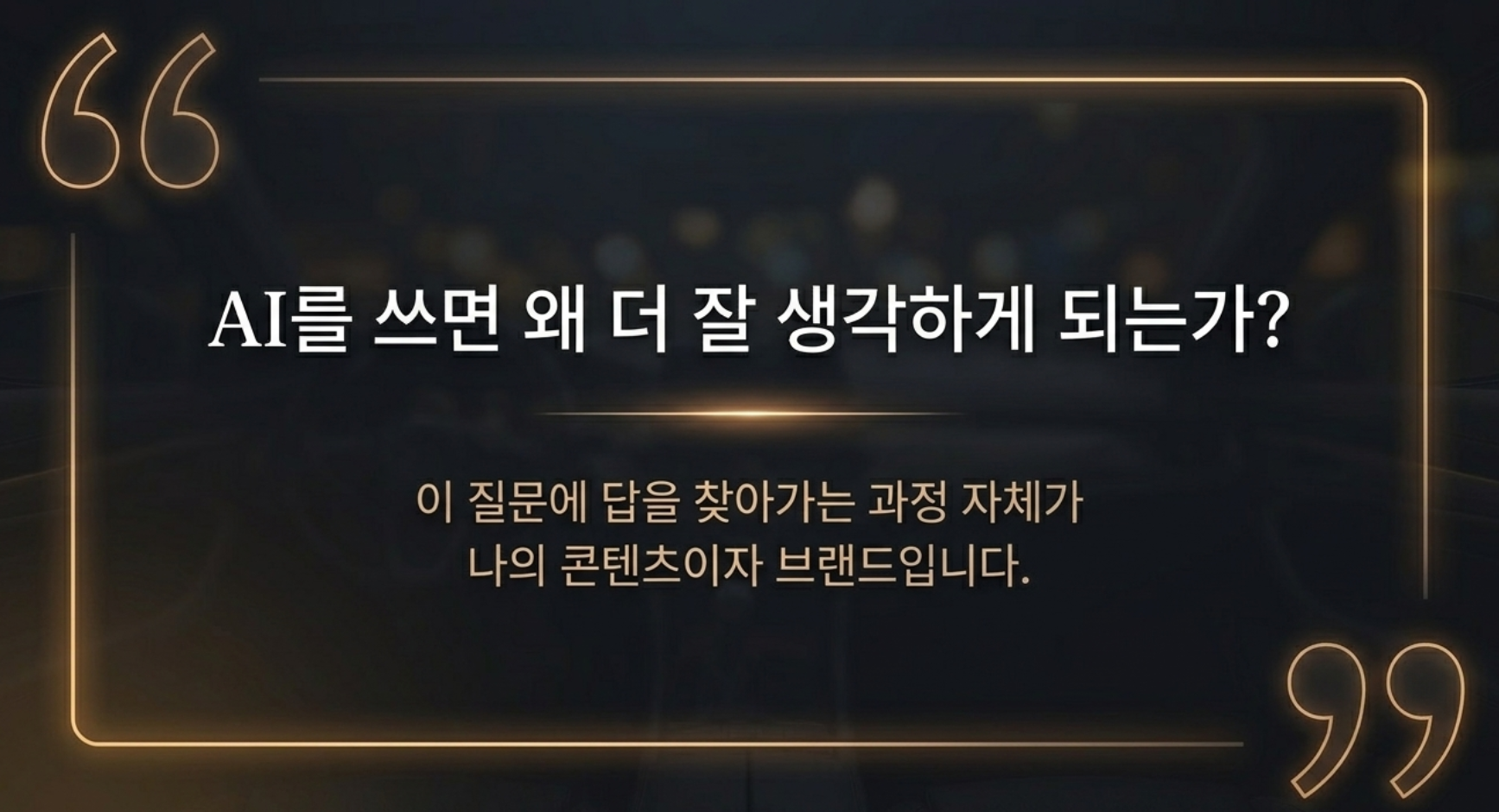 AI 활용을 강의하는 사람으로서, 나는 이 관점을 언제나 먼저 이야기한다. AI를 쓰면 왜 더 잘 생각하게 되는가—이 질문에 답을 찾아가는 과정 자체가 나의 콘텐츠이고, 나의 브랜드다.